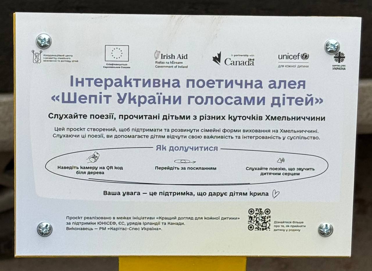 Отож. У п’яти громадах Хмельницької області ми створили п’ять інтерактивних поетичних алей, де висаджено 50 дерев і зібрано 50 голосів дітей.