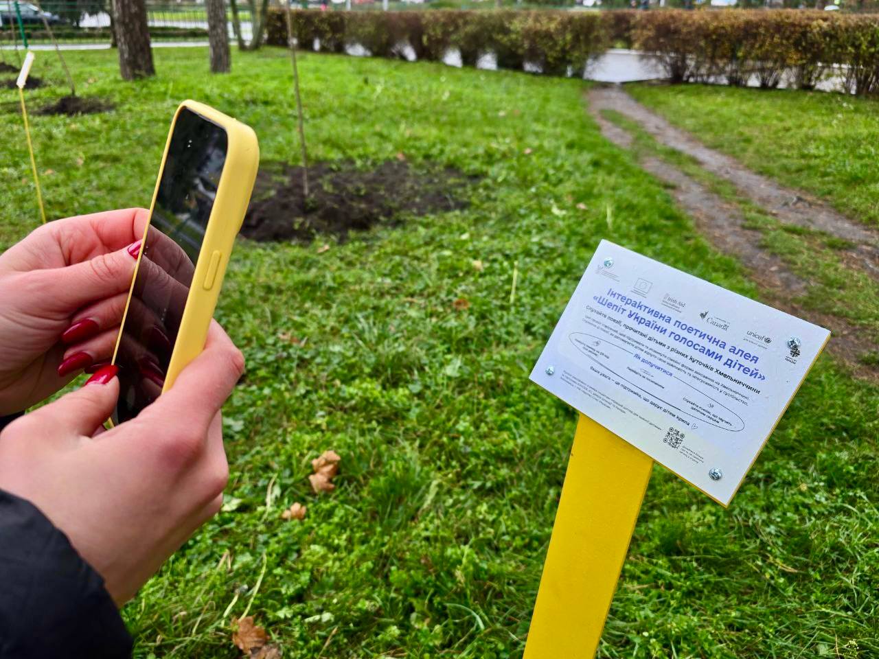 Біля кожного дерева встановлена табличка з QR-кодом: достатньо лише навести камеру, щоб почути поезію у виконанні дитини.