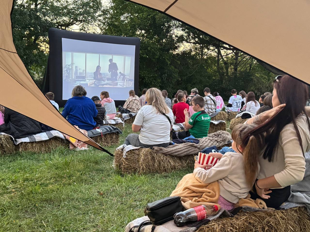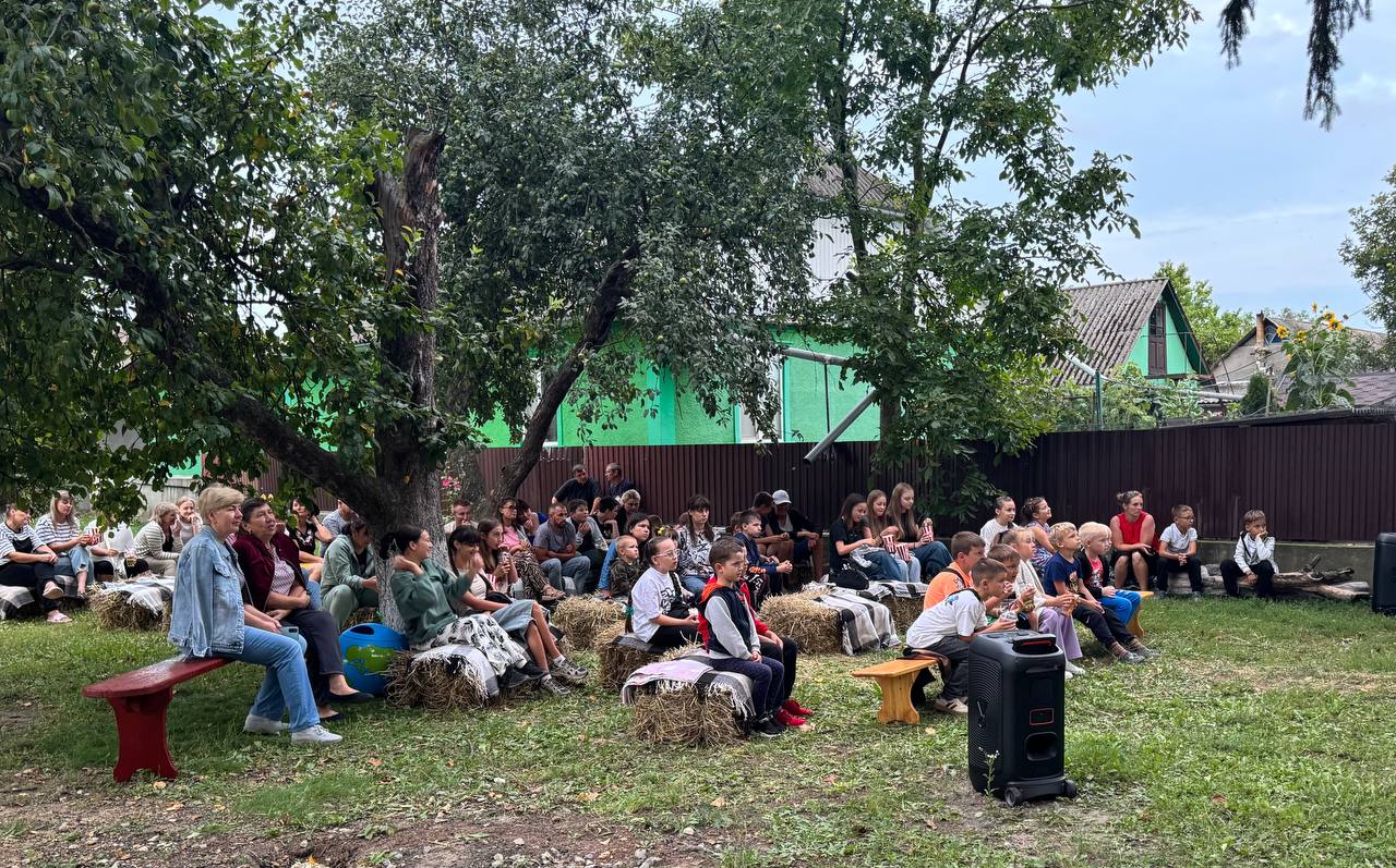 Влітку 2025 ми об’їхали понад 10 віддалених сіл Хмельницької області, перетворюючи прості сільські майданчики на справжні казкові кінотеатри просто неба. Діти і дорослі збиралися разом на солом’яних тюках, смакували свіжий попкорн, ми запалювали ліхтарики — і на величезному екрані оживали історії, які дарують тепло.